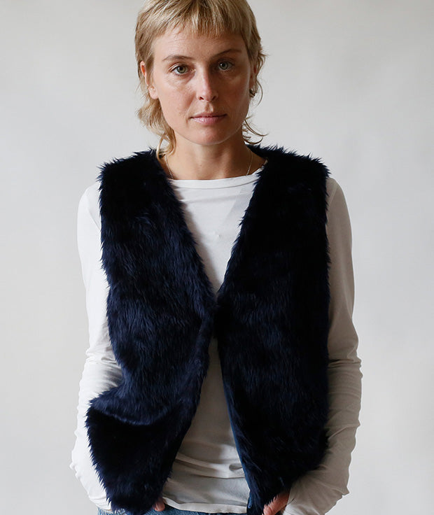 Our latest pattern is designed for faux fur fabrics and includes: a gilet, bag, hat, collar and headband.....