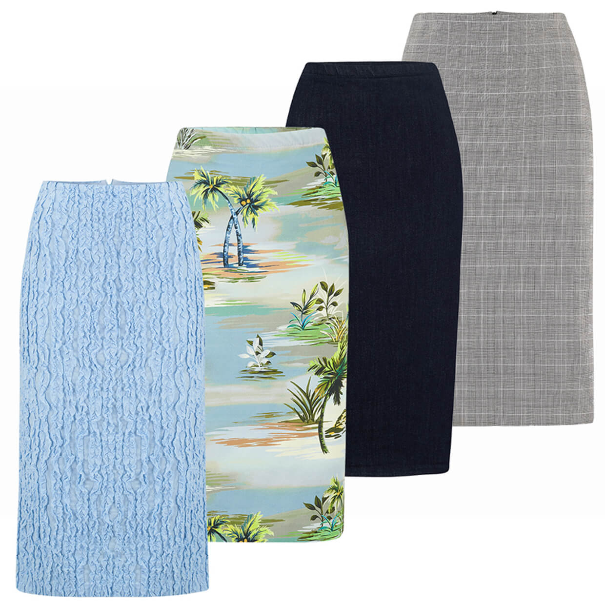 The Ultimate Pencil Skirt pattern has one pattern for a stretch pencil skirt and another for a non-stretch woven skirt. The stretch pencil skirt also features in The Essential Collection Book.