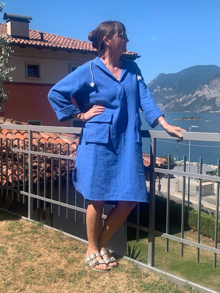 I feel the curved hem gives a stylish finish and was very pleased with the instructions and the result. I elected to only do 2 pockets at hip height as I didn’t want extra bulk at the bust. You can’t really see it in the pics but I top stitched with a metallic silver thread. I used quite a heavy linen and just about got away with the pockets as there is some thickness to sew through with the pocket design.
